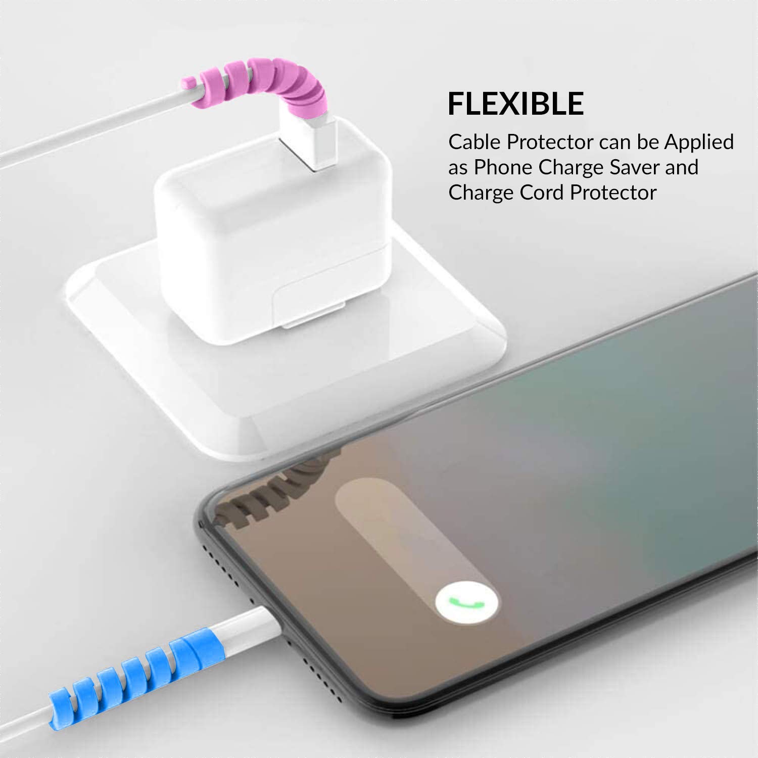 BKN Spiral Charger Cable Protectormade of soft rubber with strong adhesion, which allows you to well fix your cables without falling off from the desk, car, nightstand, router etc., keeping your cords neatly and well organized.
